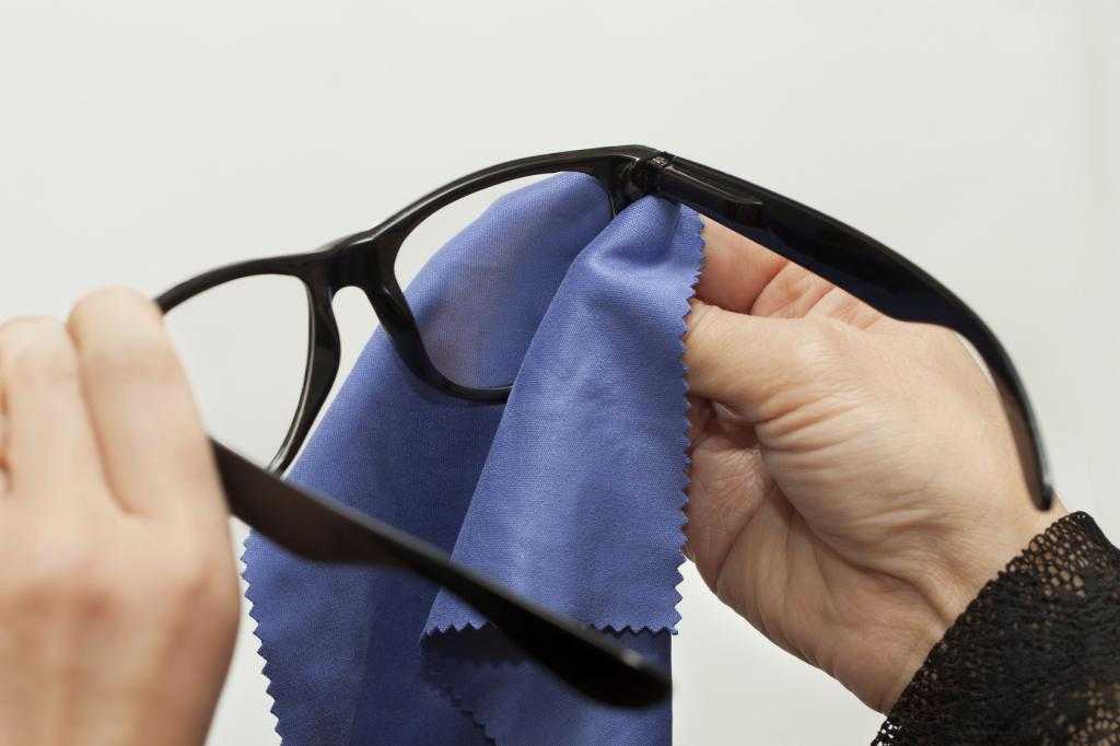 - При помощи специальной салфетки полируются линзы очков (нельзя слишком сильно нажимать и надавливать на них).