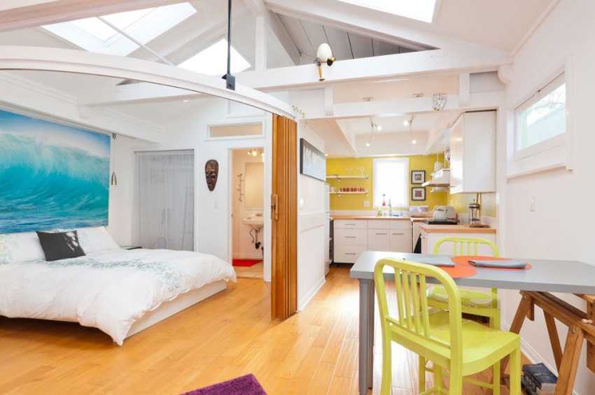 При определенной планировке квартиры такие двери могут использоваться и для зонирования пространства. Так, например, если установка мощных дверей будет лишней, а отделить одну зону от другой нужно, то двери-гармошки будут как нельзя кстати.