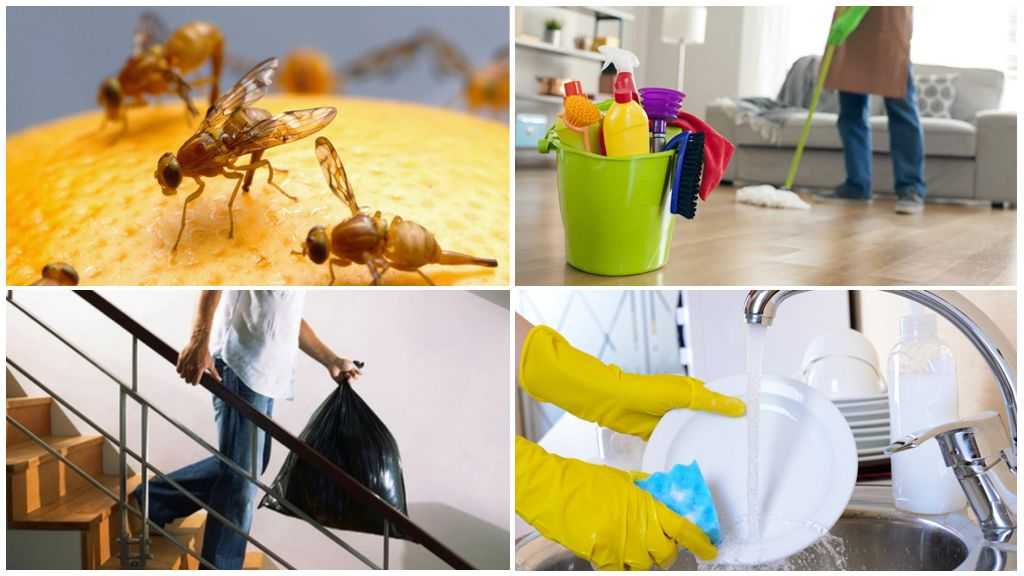Поддержание чистоты. Обязательная влажная уборка, уничтожение испорченных продуктов, опорожнение мусорного ведра. В сезон овощей и фруктов это действие требует более частого исполнения. Хранение припасов в закрытой таре. Ничего съестного не должно оставаться в пределах досягаемости паразитов. В частном доме работы предстоит больше. Тщательный уход за животными, включающий частое удаление отходов их жизнедеятельности. Навоз рекомендуют обрабатывать раствором карфоса, чтобы отпугнуть плодовитых насекомых.