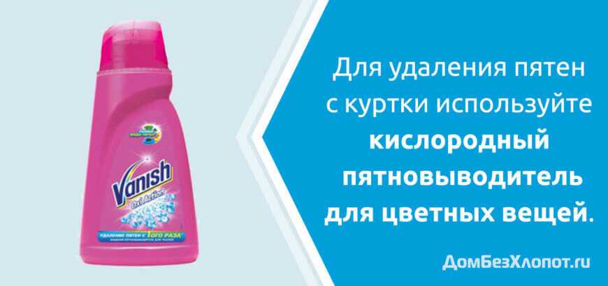Почистить пуховик без стирки, можно используя чистящие средства и пятновыводители вроде «Sarma», «Ваниш», «Frau» и т. п.