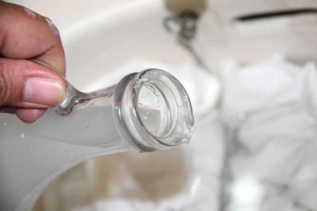 - удаление серьезных загрязнений при помощи водного раствора уксусной кислоты.