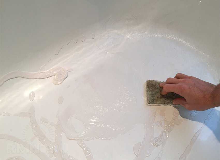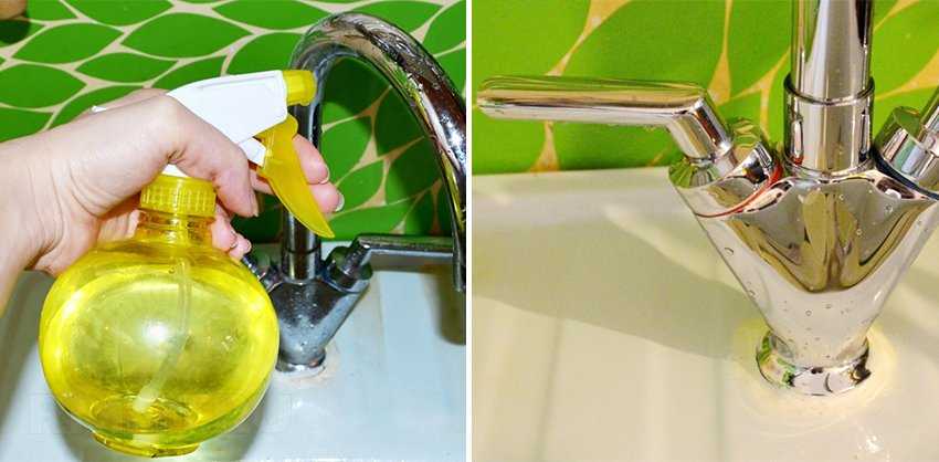 Для борьбы с известковыми отложениями рекомендуется применять не столовый уксус, а уксусную эссенцию, которая разводится 6-8 частями дистиллированной воды для снижения летучести. Пищевую лимонную кислоту разводят в концентрации одна столовая ложка на литр воды. Поскольку оба состава практически не обладают вязкостью, наносить их на ванну или хромированную сантехнику лучше посредством пропитанной ветоши, либо несколько раз из ручного пульверизатора. Кстати, если наполнить очищаемую ёмкость горячей водой и дать ей как следует прогреться, эффект будет куда более наглядным.
