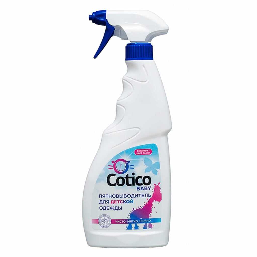 Среди хороших детских пятновыводителей стоит упомянуть российский бренд Cotico Baby. Средство продается по достаточно доступной цене и при этом оказывает неплохой чистящий эффект. Использовать его можно для одежды, мебельной обивки, штор, курток, постельного белья. Одним из главных его преимуществ является удобство применения, поскольку средство выпускается в виде спрея, который удобно взять с собой, не переживая, что он может рассыпаться или разлиться.