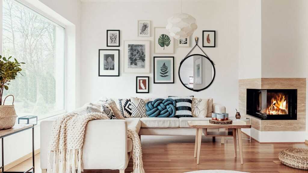 Важно выбрать стену рядом с окном, а перед ней поставить стильную светлую мебель; при этом отражение света будет максимальным, а впечатление от задумки — полным. Перед панно можно поставить интересное растение, а на стене напротив — повесить картину