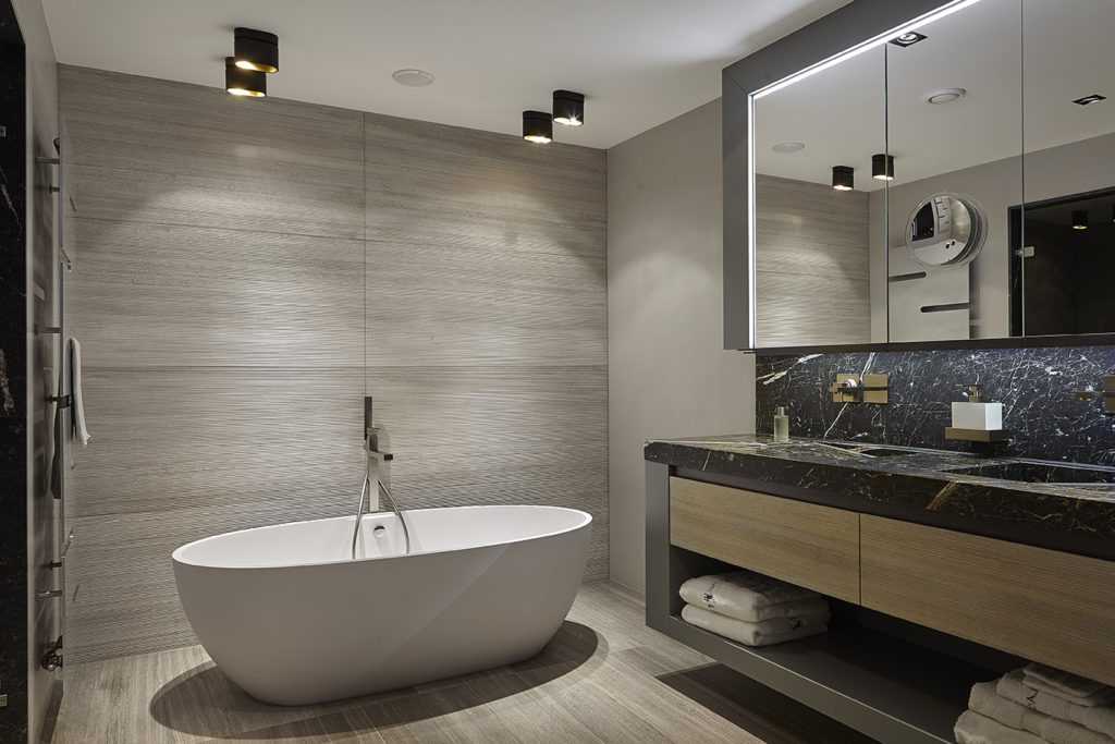 Если же основного света мало, и нужно осветить зону именно у зеркала, то выбор падет совершенно на другие варианты и подсветки для них: для ежедневных процедур нужны лампы, которые «смотрят» в центр; когда нужно выделить отдельные элементы зеркала – можно выбирать модели с точечными светильниками.