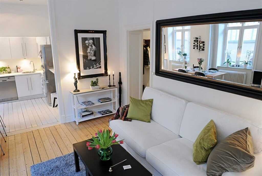 При верном расположении зеркал в гостиной она приобретет следующие визуальные эффекты: