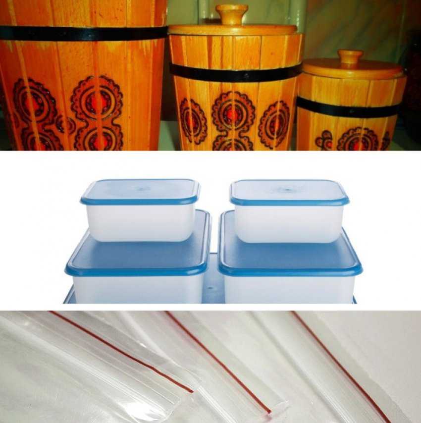 - Выбирайте ёмкости для хранения из стекла, дерева, керамики или мешковины. Требование к ним одинаковое — герметичность закупорки во избежание попадания влаги и проникновения жучков-вредителей.