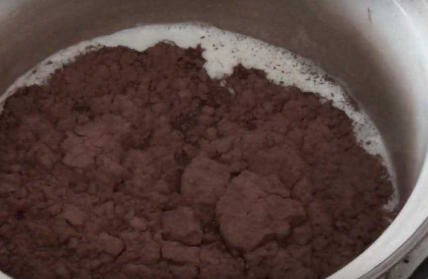 В масляную смесь подсыпаем какао, тщательно размешиваем и убираем на время в холодильник.