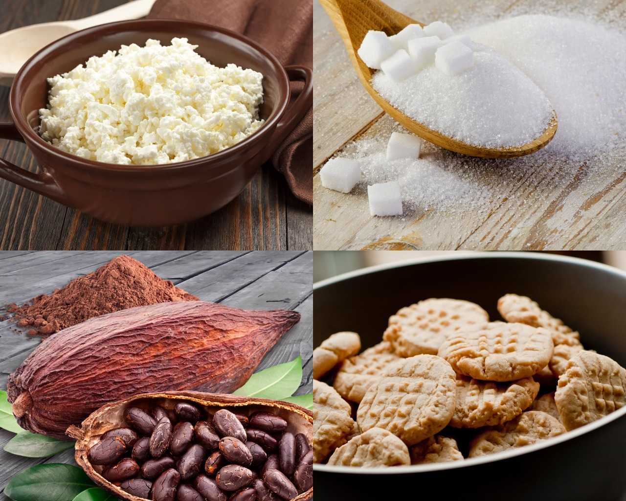 - В это время из творога, сахарного песка и порошка какао приготовить начинку, смешав ингредиенты.