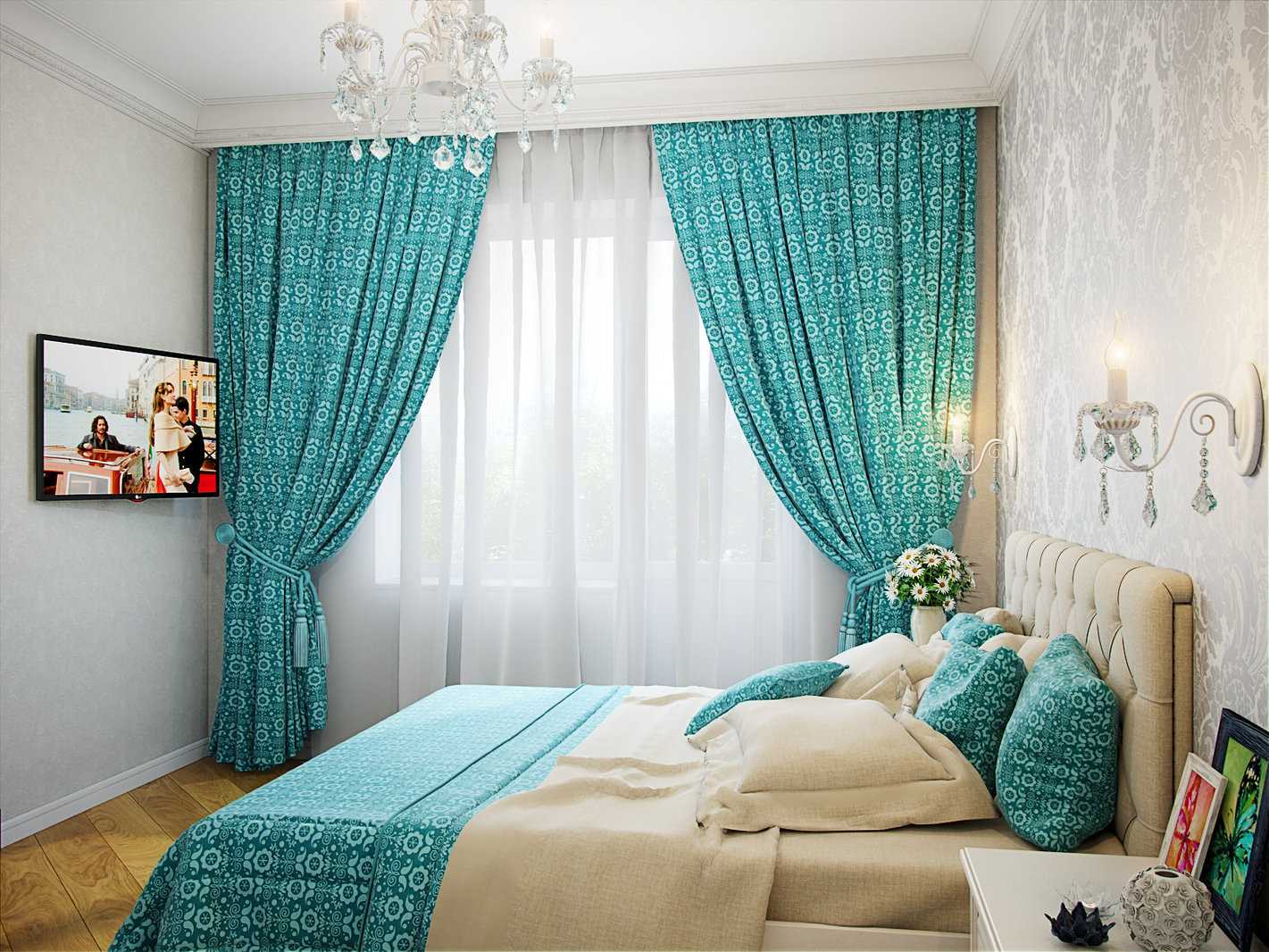 Особенности применения бирюзовых штор в интерьере