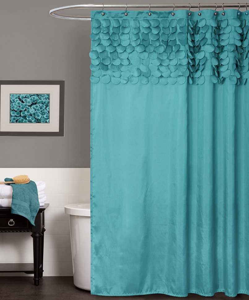 Штора в ванной часто делается из непромокаемой ткани, так как предназначена исключительно для того, чтобы разделять комнату на две части – основную половину с раковиной и саму ванну или же душевую кабину. А потому здесь стоит отдать предпочтение специальному материалу, который предназначен для этих целей.