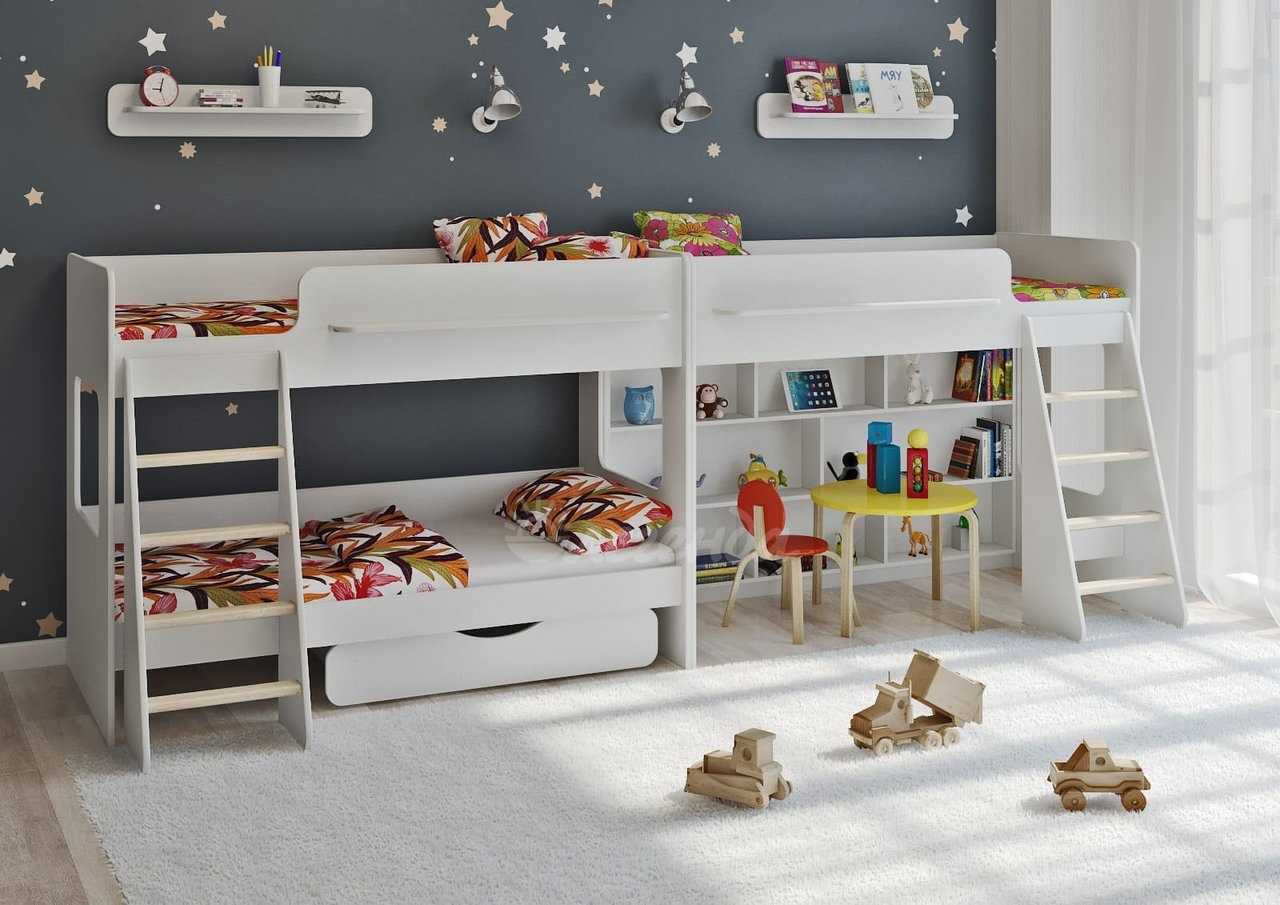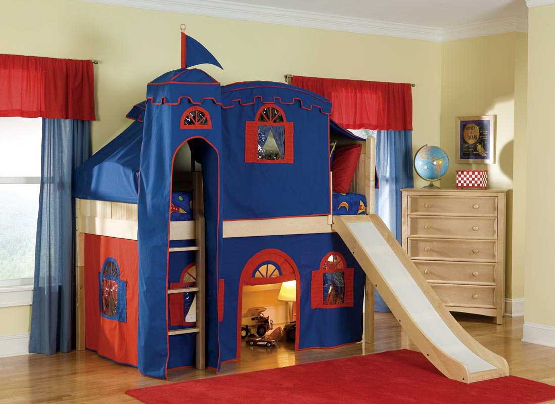 Располагая достаточным количеством свободного места, можно в одном предмете мебели совместить как спальное место, так и рабочее или игровое пространство. Чаще всего, родители активных деток поступают именно таким образом.