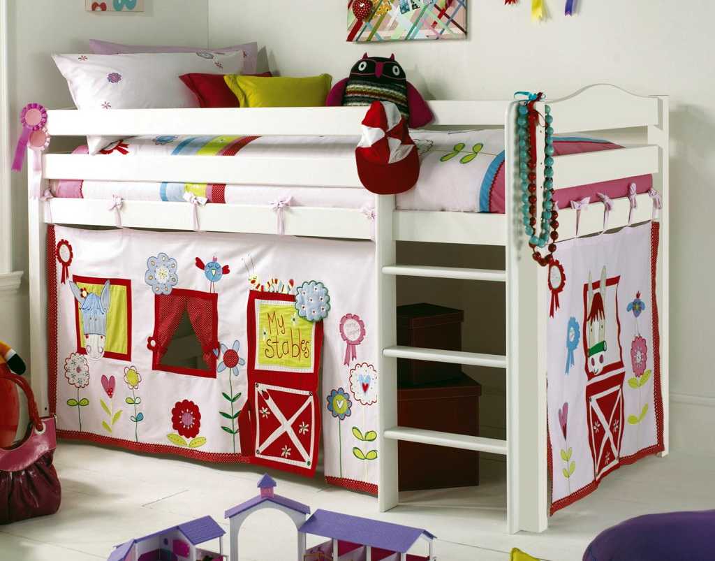 Можно разместить там кукольный домик или замок, поставить палатку. Иногда внизу просто находятся ящики для хранения вещей или игрушек.