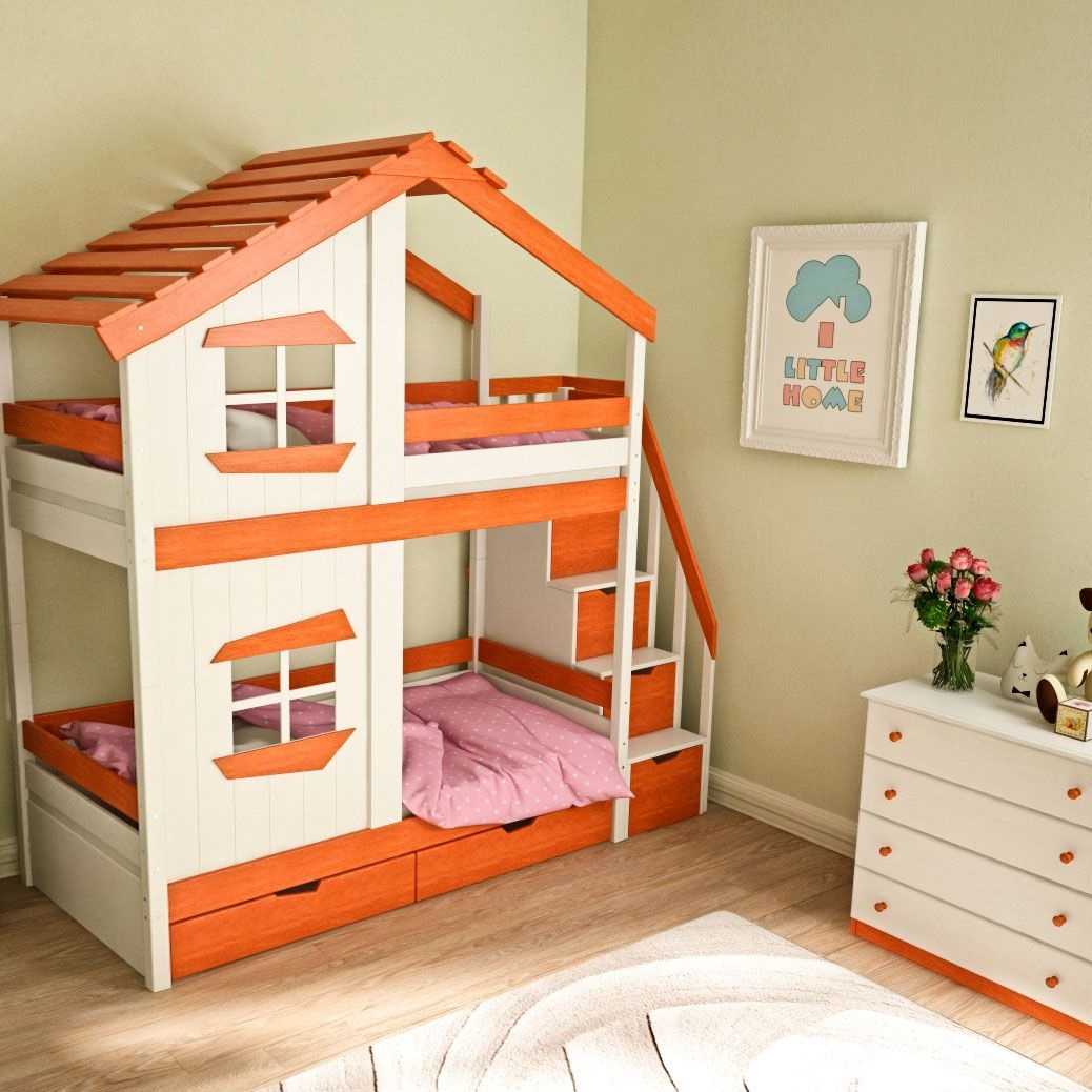 Очень редко, но все же можно встретить и трех- и более ярусные домики, но их повсеместное применение ограничивается, прежде всего, высотой потолков, поэтому двухъярусная кровать домик считается наиболее удобным максимальным количеством ярусов.
