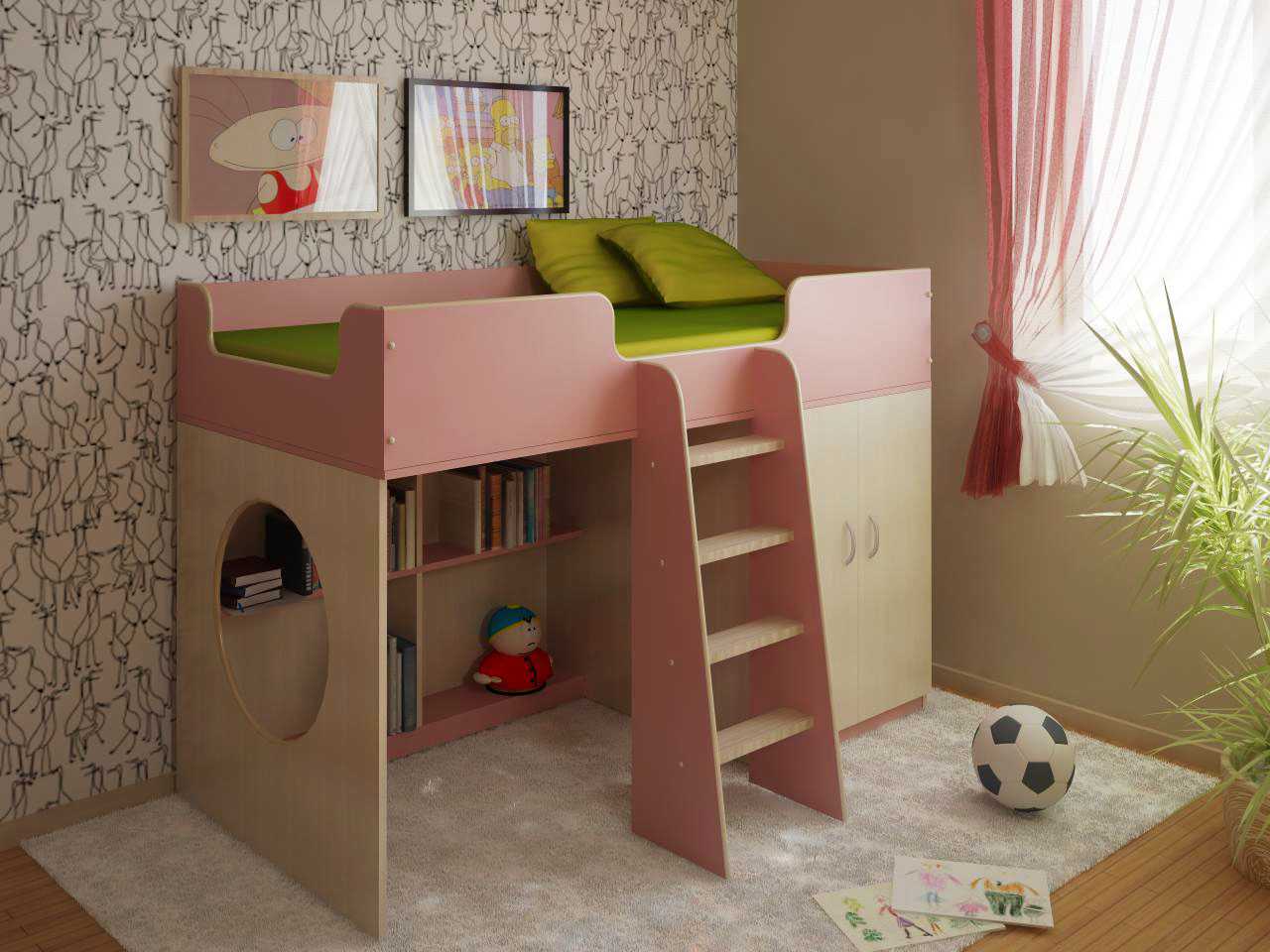 Есть варианты детских кроватей-чердаков со шкафом и столом или с полками. Такая конструкция позволяет сэкономить место, поэтому отлично подходит для однокомнатных или малогабаритных квартир. Но совмещение стола и шкафа может мешать ребенку полноценно заниматься.