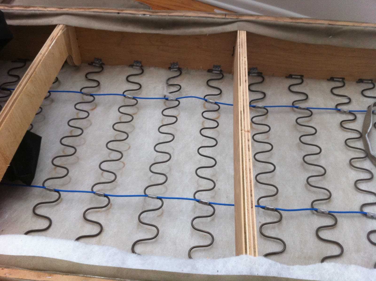 - Установка основания под сиденье. Можно использовать пружинный блок или натянуть корсажную ленту.
