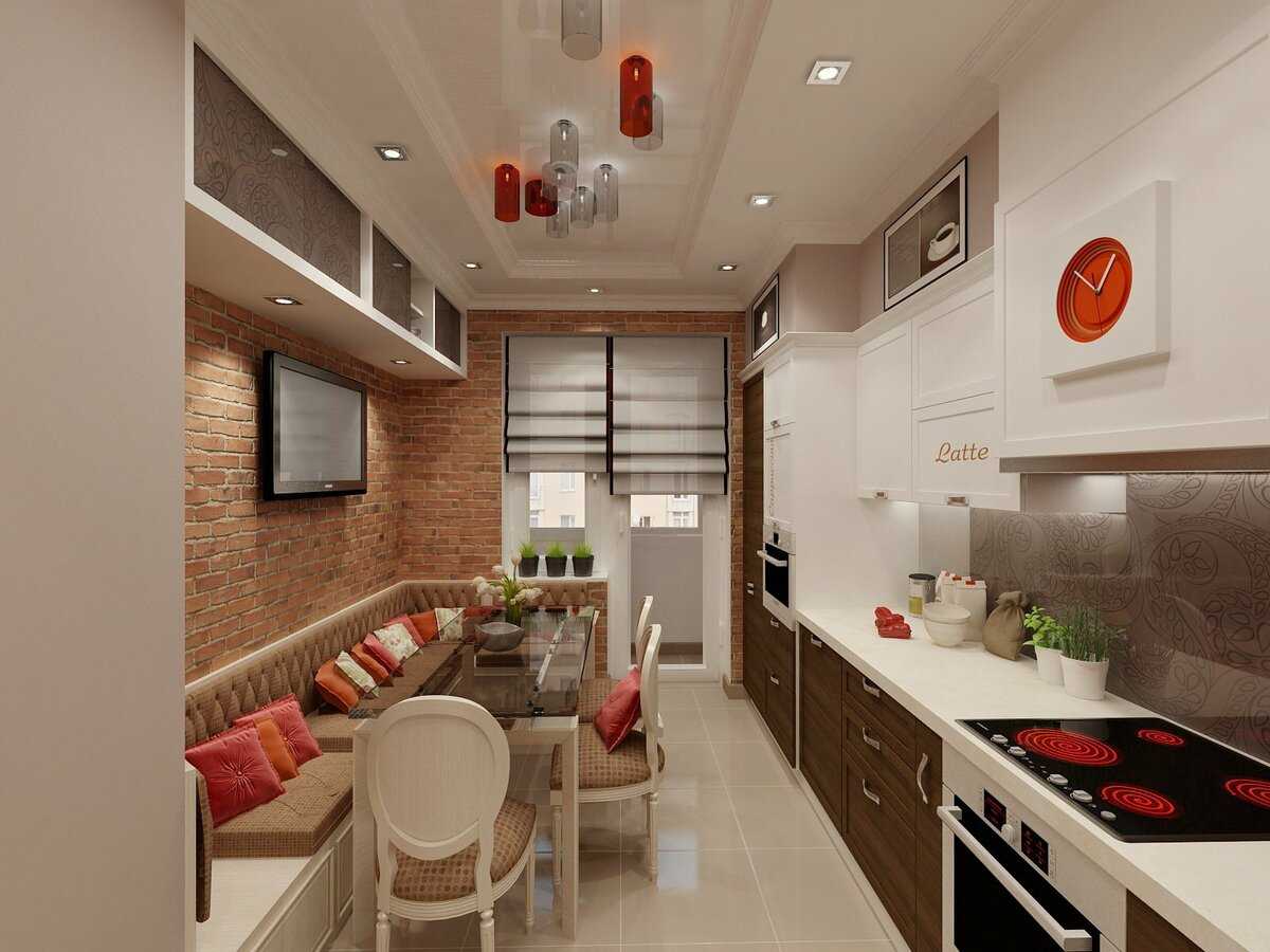 На фото — проект кухни площадью 9 кв. метров, объединенная с балконом.
