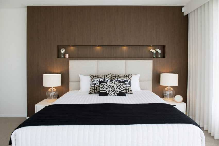 Дизайн спальни 12 метров. Шедевр из трех цветов и подголовника