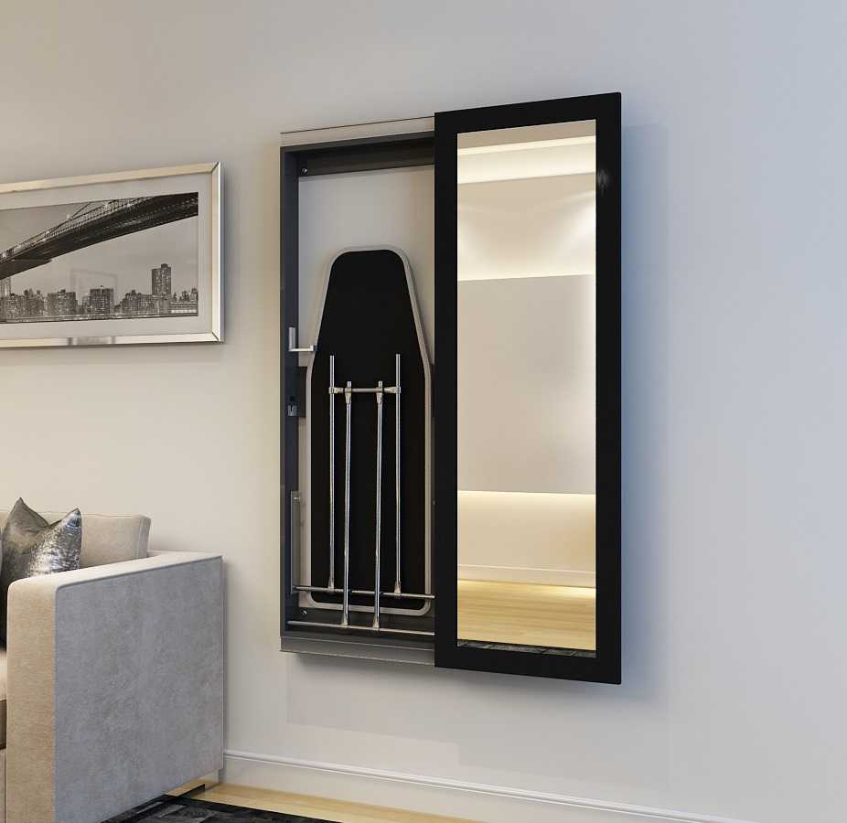 То же правило действует и для встраиваемого в шкаф гладильного полотна. Ее можно установить только при соответствии размеров мебели с самим гладильным полотном в вертикальном положении и наличии механизма.