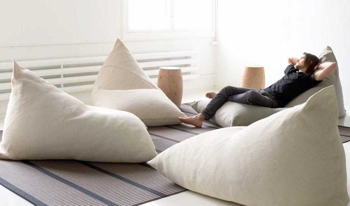 Бескаркасные конструкции не имеют жесткого основания. Благодаря мобильности и легкому весу изделия без усилий перемещаются с места на место. Отсутствие твердой основы позволяет человеку принять максимально удобное сидячее либо лежачее положение.