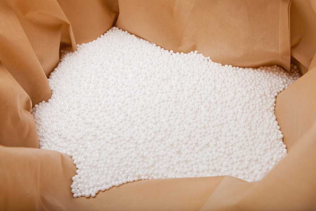 - Наполнитель из синтетики. Это может быть как профессиональный пенополистероловый наполнитель (в виде маленьких очень легких шариков, которых потребуется около трехсот литров), так и столь недорогой материал, как поролон, который наверняка у многих найдется дома.