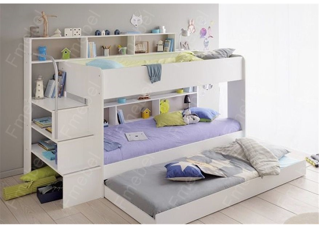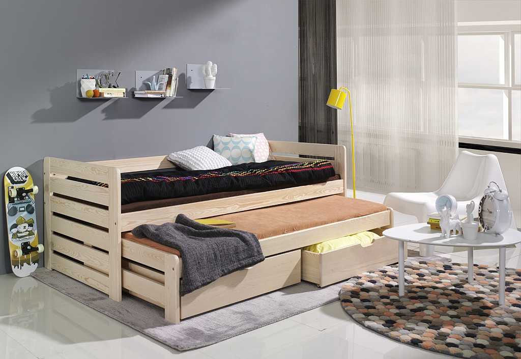 Настоящая задача — обустроить комнату для двоих детей. Двухъярусные кровати хорошо подходят для небольшого пространства. Но это не единственное решение, которое вам следует рассмотреть. Есть и двуспальные детские кровати, то есть со спальными местами на двух уровнях «рядом» друг с другом, кроме одного нижнего. Обычно это раскладные кровати — нижняя полка выдвигается с роскошным ящиком. Этот дизайн также встречается на некоторых детских диванах. Двуспальные кровати для детей идеальны не только в комнатах братьев и сестер . Дополнительное место для сна будет полезно, например, для сна друга или коллеги.
