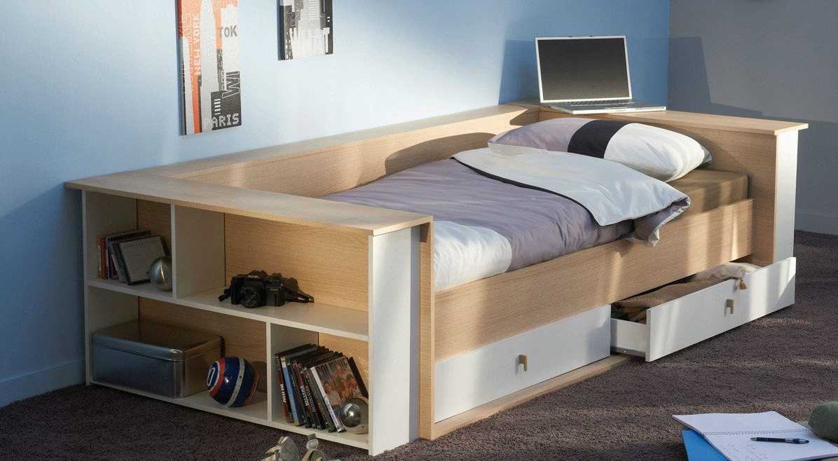 Функциональные модели особо любимы тинейджерами. Обычным классическим конструкциям они предпочитают нестандартную мебель, оснащенную дополнительными модулями и механизмами. Примером может быть кровать с выдвижными ящиками. Если модель двухэтажная, коробы могут располагаться в ступенях. Хранение вещей удобно, когда ящики встроены в сам каркас под матрасом. В том случае, когда кровать высокая, контейнеры располагают в два ряда.