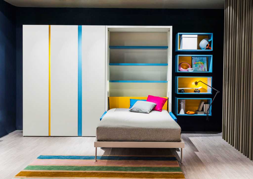 Трансформирующаяся кровать-шкаф оснащается технически. Чтобы не поднимать и не опускать корпус мебели вручную, к некоторым моделям прилагается пульт. Подобное дополнение значительно облегчает эксплуатацию и делает жизнь подростка более интересной.