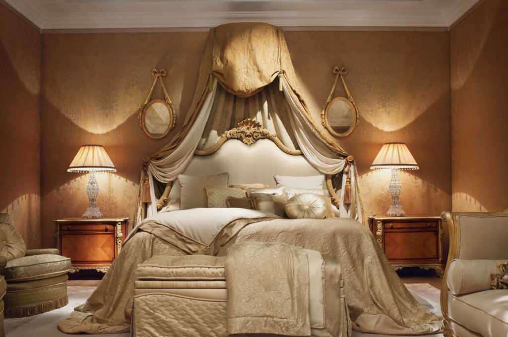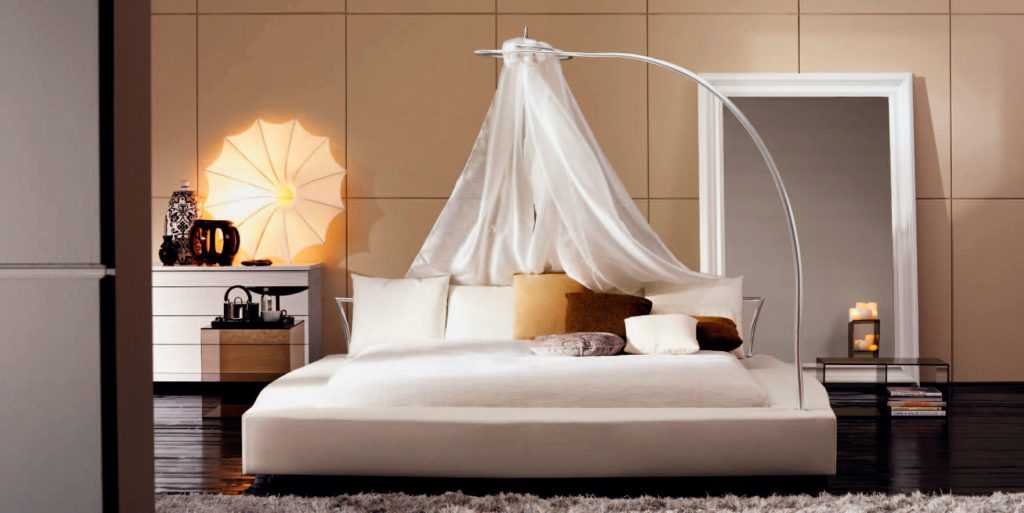 - конструкции нестандартного дизайна: кровать с балдахином в спальне будет выполнять функции, задуманные дизайнером.