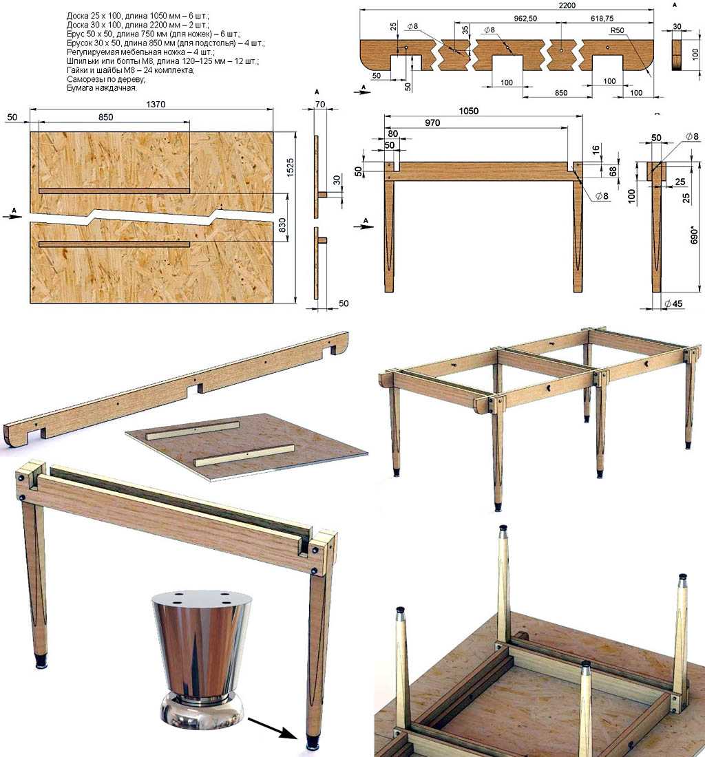 - на готовых ранее ножках делаются надрезы, конструкция собирается болтами, саморезами и другими деталями.