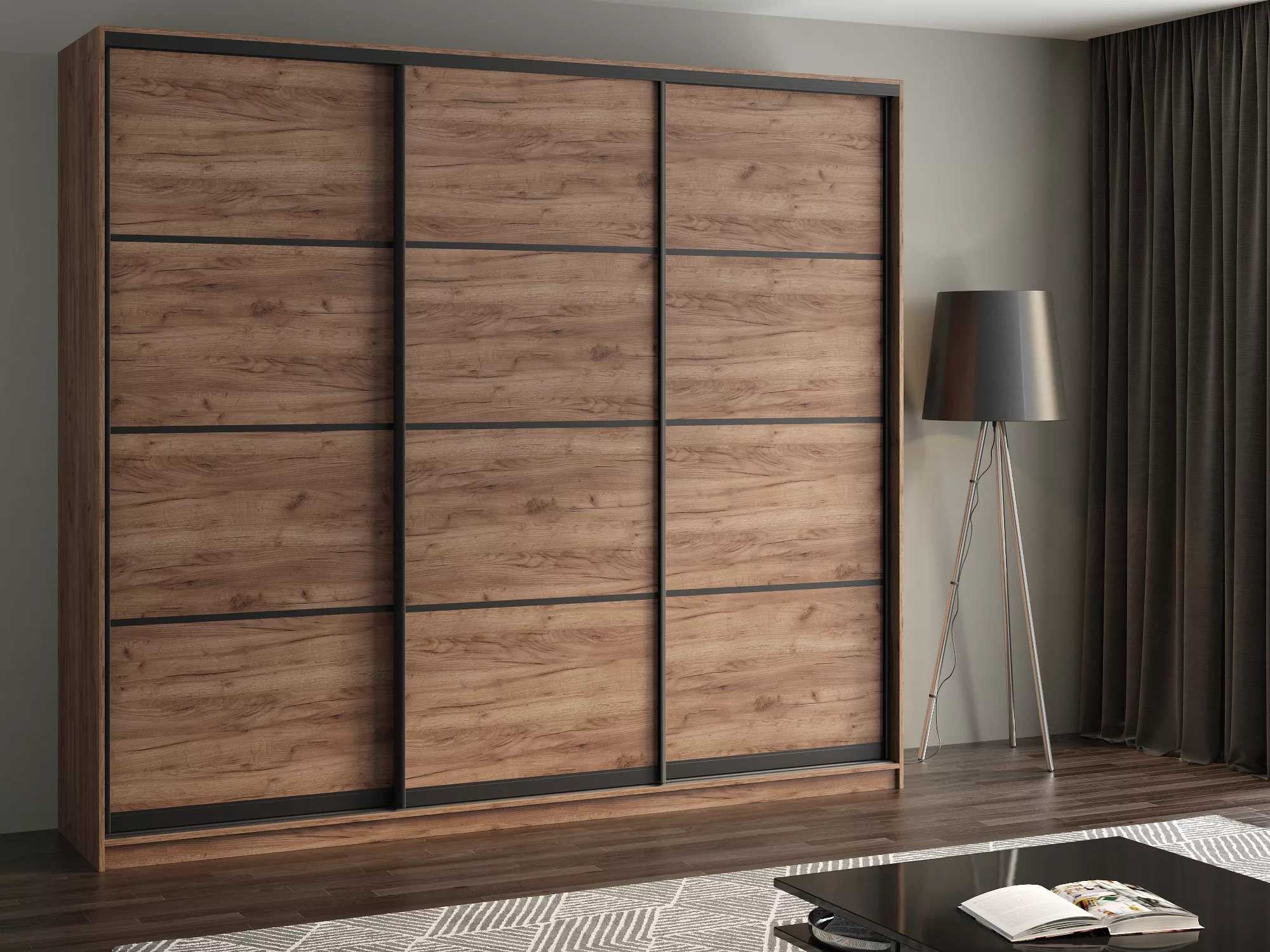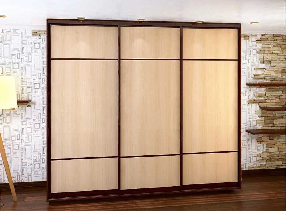 Он ценится за экологическую чистоту и уникальную структуру. Более бюджетным вариантом являются шпонированные изделия. Они изготавливаются из прессованной стружки, покрытой тонким слоем древесины. Шпон шкафа-купе имитирует массив, но не обладает его прочностью.