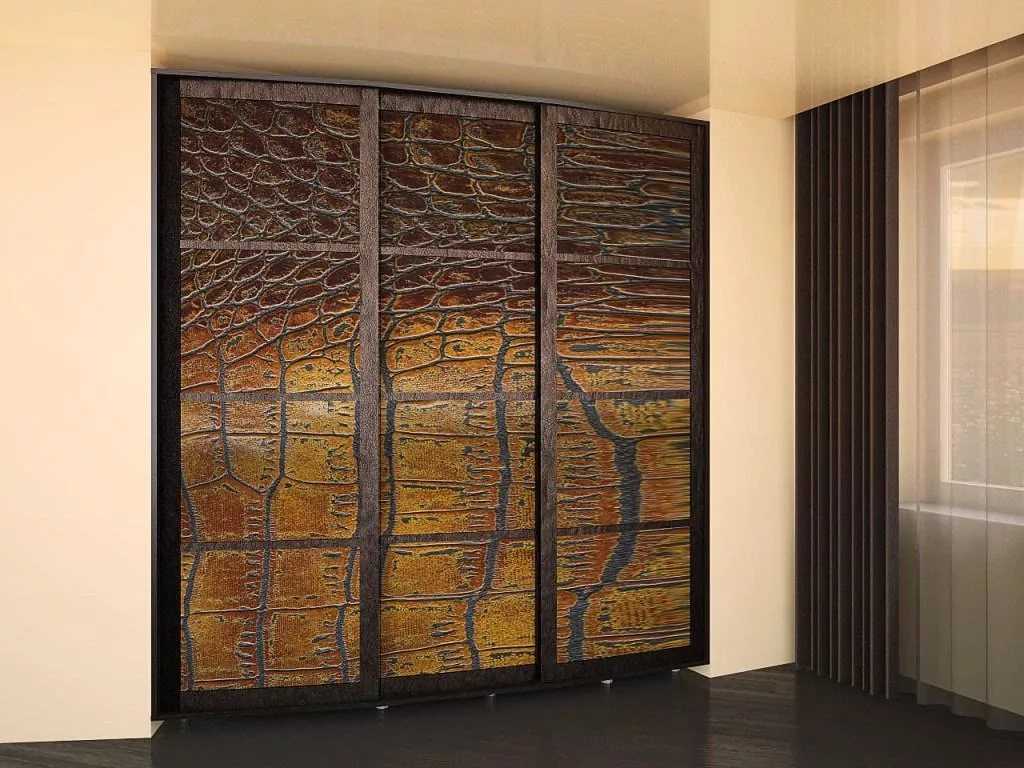 Фотофасады станут универсальным вариантом, поскольку представлены в различных стилях. В эко-интерьере будет уместен шкаф-купе с ротангом. Также для отделки дверей используются натуральная кожа, бамбук, витражи. Все эти варианты самодостаточны, поэтому выделяются в помещении, что следует учитывать при выборе.