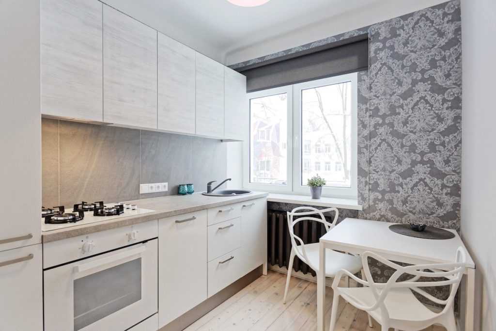 Если есть возможность согласовать перепланировку по присоединению лоджии к площади маленькой кухни, то стоит ей воспользоваться. Так удастся выделить место для обеденной зоны, барной стойки или небольшой зоны отдыха.