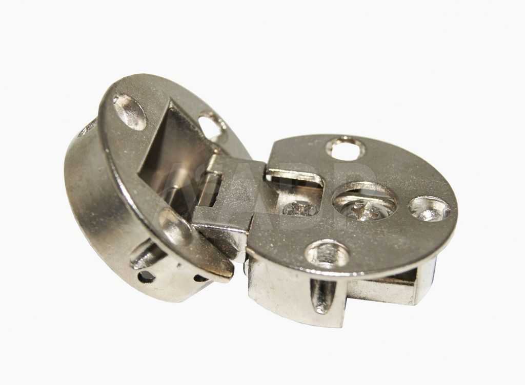 - Инверсные. Состоят из пары пластин с отверстиями, скрепляются при помощи подвижного механизма. Актуальны для распашных дверей, открываются на 180 градусов.