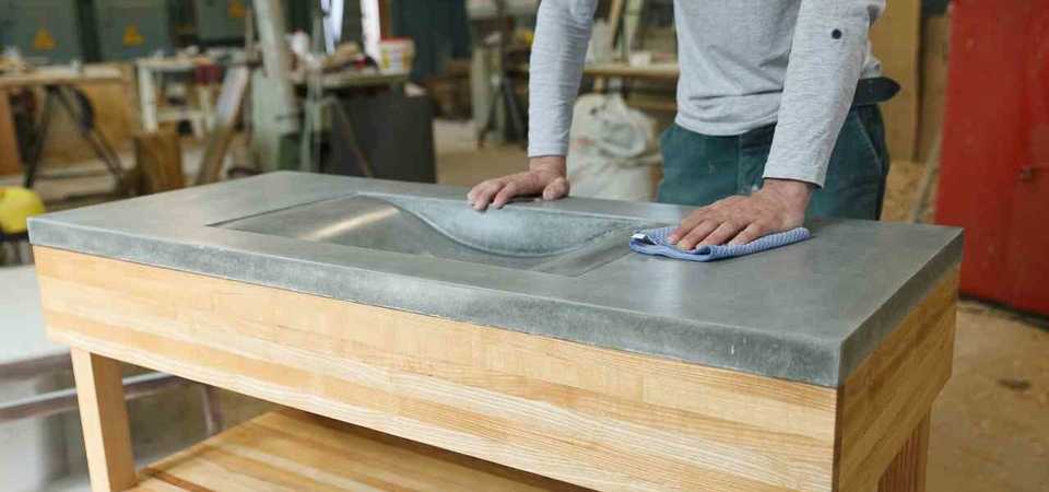 При соблюдении последовательности и правил работы с интерьерным бетоном изготовить из него столешницу окажется совсем не сложно.