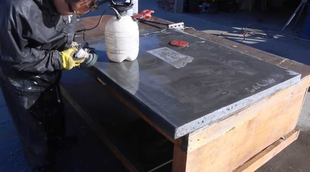Можно обработать бетонную столешницу и вручную, с использованием наждачной бумаги. Но на это потребуется немало сил и времени.