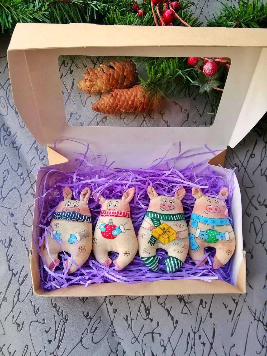 Игрушки. Для подарков шьют мягкие игрушки, символизирующие приближающийся праздник. На данном этапе подбирают выкройку поросенка и изготавливают его из желтой ткани. Это позволит достойно встретить хозяина или хозяйку наступающего Нового года.