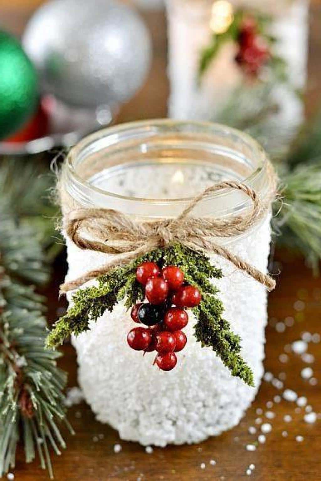 Главный символ торжества. Центром новогоднего ансамбля может стать прозрачная банка, если в неё поместить какую-нибудь красивую фигурку. Целесообразно взять символ будущего года. Внутрь также кладут несколько еловых лапок.