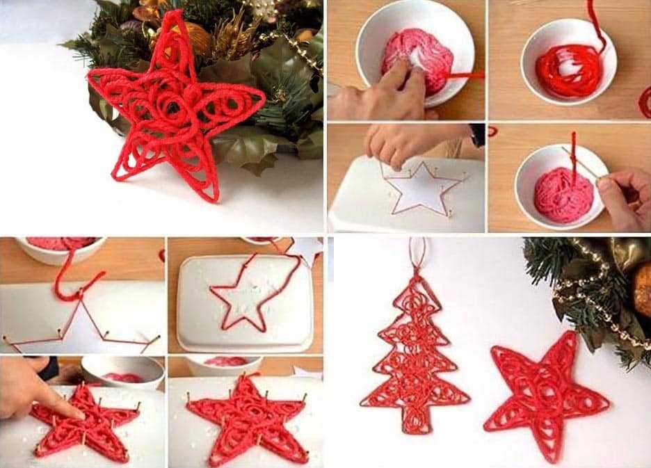 Воздушные композиции из ниток. Практически невесомые изящные украшения талантливые мастера делают из ярких шерстяных ниток. Их подвешивают на ёлке или в другом приглянувшимся месте.