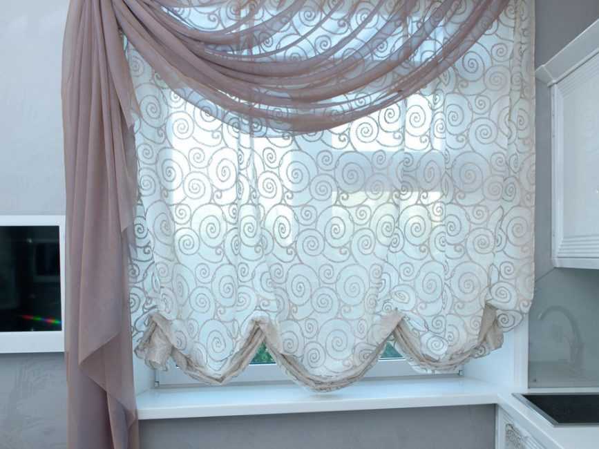 Для штор с ламбрекенами, которые расположены недалеко от плиты или раковины, можно посоветовать посмотреть на ткань со специальной обработкой – противопожарной и водоотталкивающей.