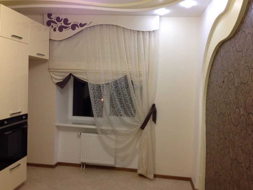 Представляют собой фрагменты красиво задрапированной ткани. Если правильно рассчитать размер, то изделия смотрятся хорошо даже в помещении со стандартной высотой потолков до 2,6 м.
