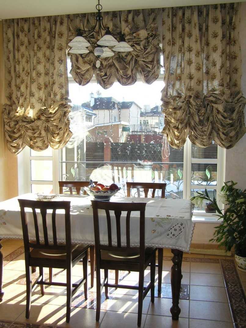 Обратите внимание на то, чтобы портьеры легко стирались и чистились, сохраняли длительное время свой приятный эстетический вид. На кухне использовать итальянский вариант декорирования окна очень удобно и выгодно
