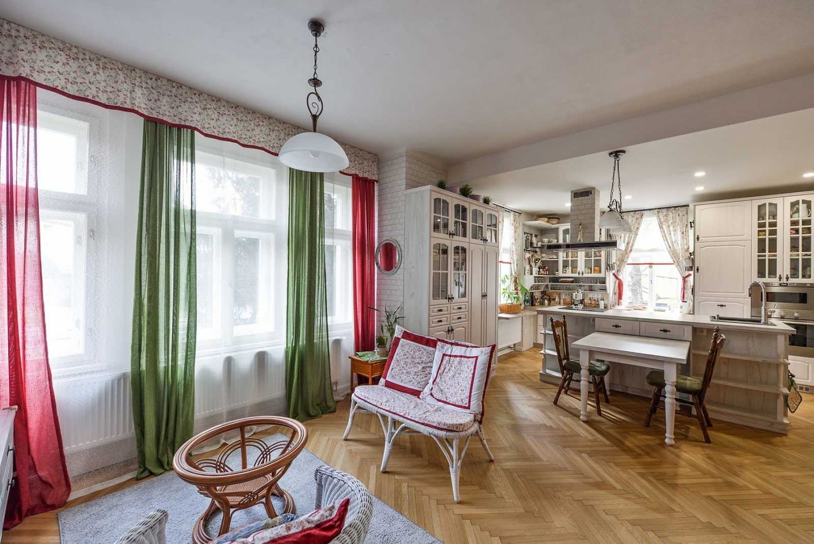 Выбрав ткани и цвета, необходимо определиться с дизайнерским решением. Если в гостиную органично впишутся длинные, свободно ниспадающие с потолка шторы, то в кухне-столовой можно из этого же материала сделать короткие занавески, римские, тканевые жалюзи.