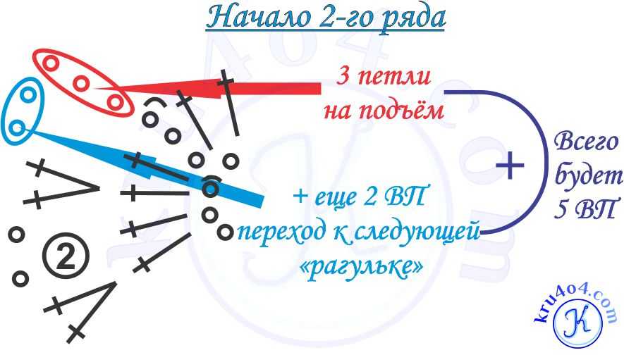Важно: такие элементы нельзя вязать в петли воздушной цепочки, предыдущим должен быть обязательно ряд ССН.