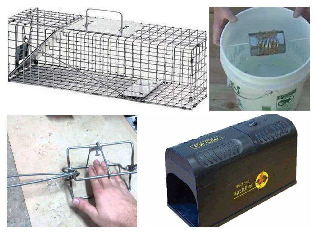 Крысоловки-капканы. Конструкция этих устройств не отличается разнообразием — приманка и механизм, который захлопывается, едва животное заденет определенную часть. Некоторые ловушки просто захлопывают дверцы, некоторые перебивают крысе хребет.