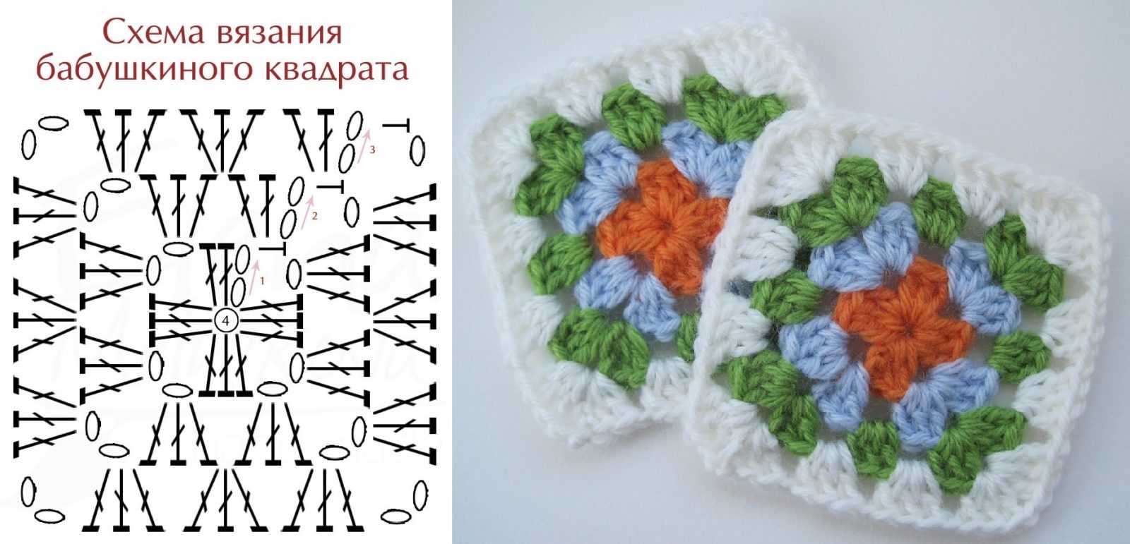Схема вязания крючком мотива «Бабушкин квадрат»