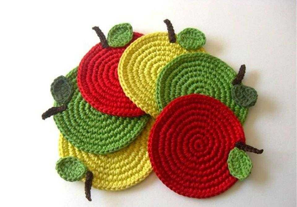 К примеру, отличным вариантом могут стать вязаные коврики на обеденный стол. Их можно назвать и салфетками, но скорее, они напоминают маленькие коврики. Практичность их не так высока, а вот декоративная функция безукоризненна. Для вязания таких ковриков берутся нити очень плотные, даже жесткие, и вязка, соответственно, должна быть плотной. Это могут быть цветные широкие полосы, соединенные между собой. Или опять же цветные квадратики.