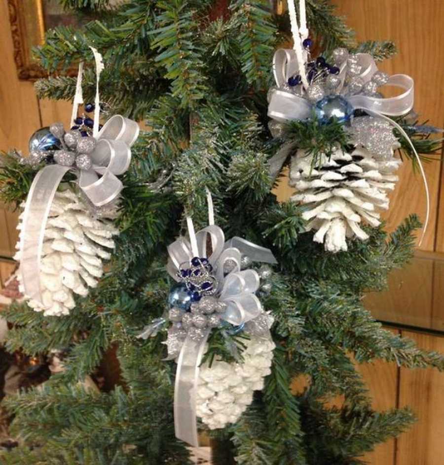 Раскрашенные блестящими или матовыми красками, шишки превращаются в уникальные украшения для интерьера.