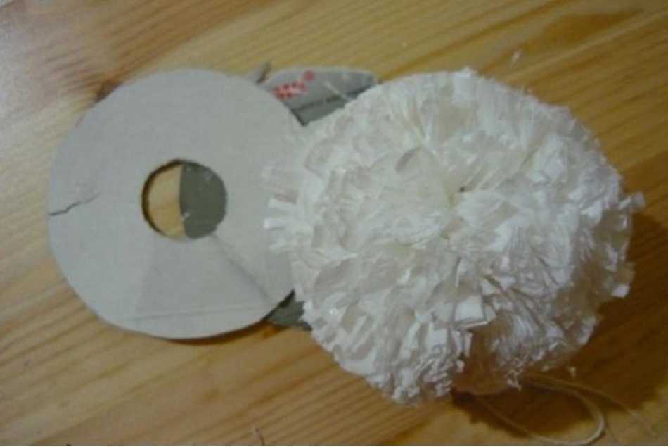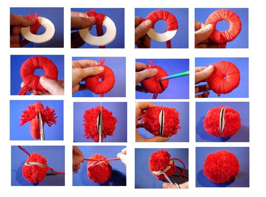 фото пошагового изготовления помпона из ниток с помощью картонного шаблона