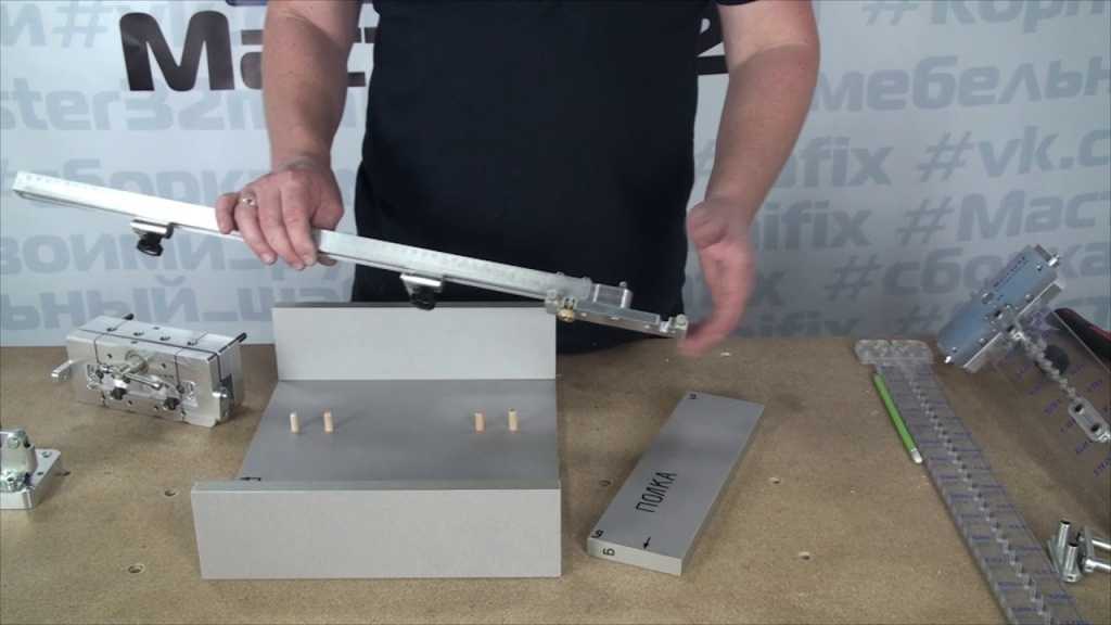 При этом следует делать регулировку длины фиксирующих элементов. Сверлить по касательной невозможно, просто держа дрель в руках. Работа с использованием кондуктора для мебели делает этот процесс несложным. Следует выставить высоту. При этом заготовку плотно прижимают к упору. Отверстия получаются точными и под требуемым углом
